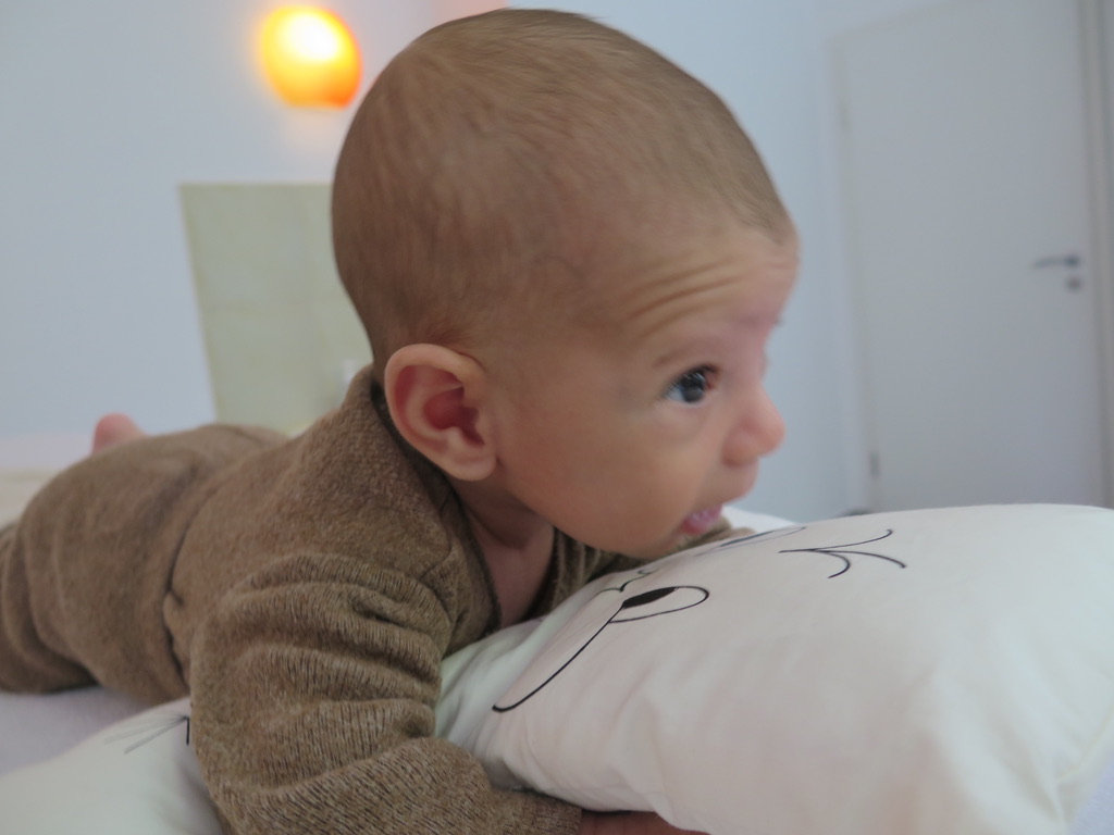 Des Weiteren wird durch die Bauchlage der Hinterkopf entlastet und beugt so einem abgeflachten Schädel vor.